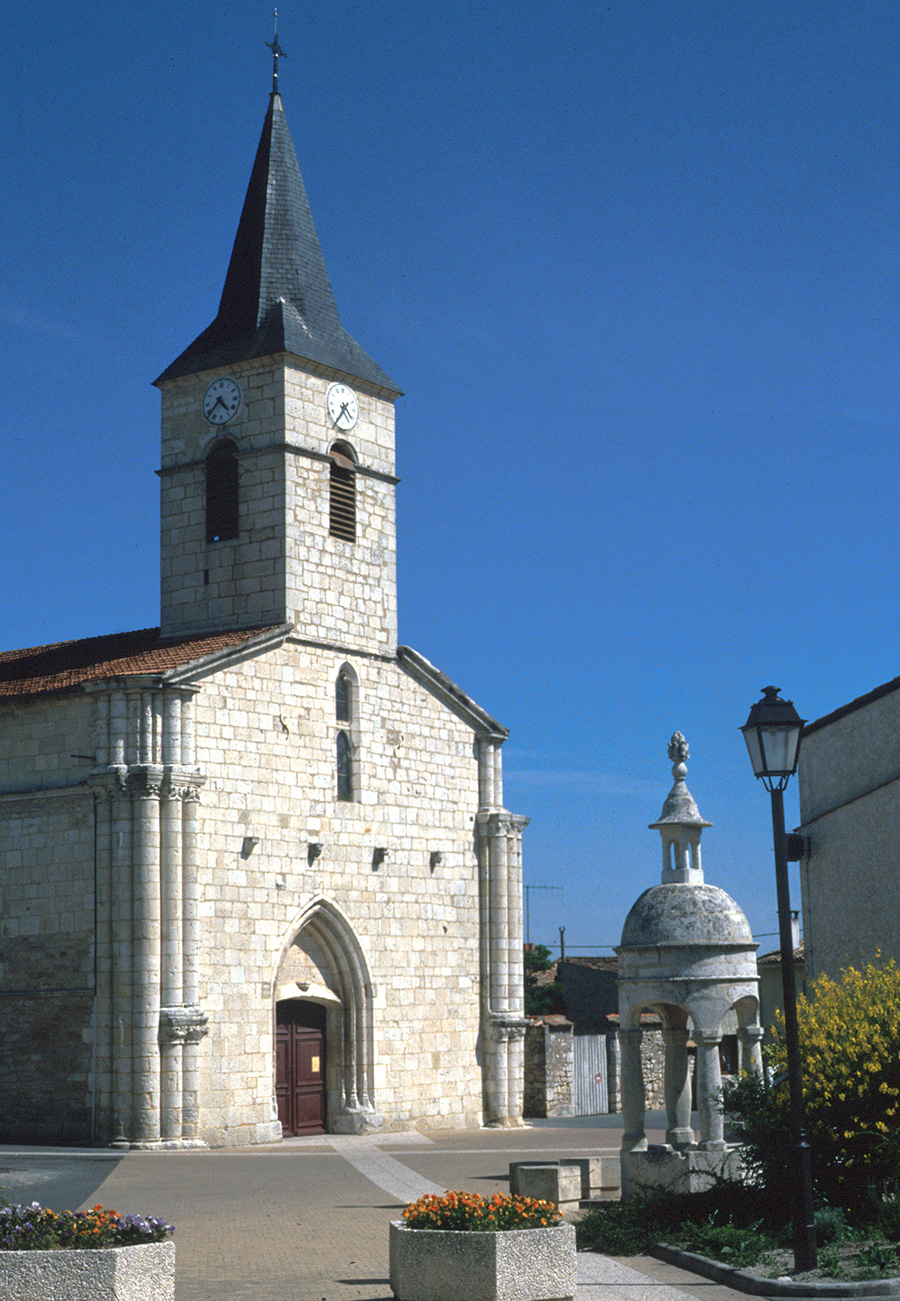 L’église Saint‑Étienne d’Arvert fut construite au 12e siècle dans le style roman : de cette période, elle conserve sur sa façade deux massifs de sept colonnes. Presque entièrement détruite au cours des guerres de Religion, elle est relevée au 17e siècle. Consolidée au 19e siècle, c’est à cette époque qu’elle se voit ajouter son clocher carré. Sur un des chapiteaux du monument, se trouve une figure vomissant un serpent, châtiment de la bavarde. Un autre chapiteau remarquable représente un visage de sarrasin à longues moustaches.
