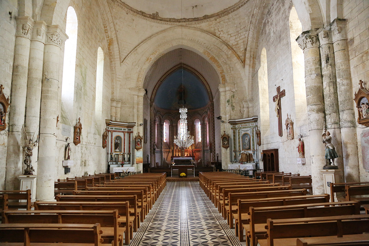 Au 17e siècle, l’église est en ruine et menace de s’effondrer : elle est alors reconstruite en urgence. Saccagée pendant la Révolution, l’église n’est restaurée qu’au 19e siècle : les voûtes du chœur sont remplacées, le clocher est surhaussé en 1830 et en 1883 une façade imitant le style roman est créée. La nef était autrefois divisée en trois travées voûtées en coupole : il n’en reste aujourd’hui que deux avec des coupoles en ciment armé réalisées en 1900, financées par Madame Minal.