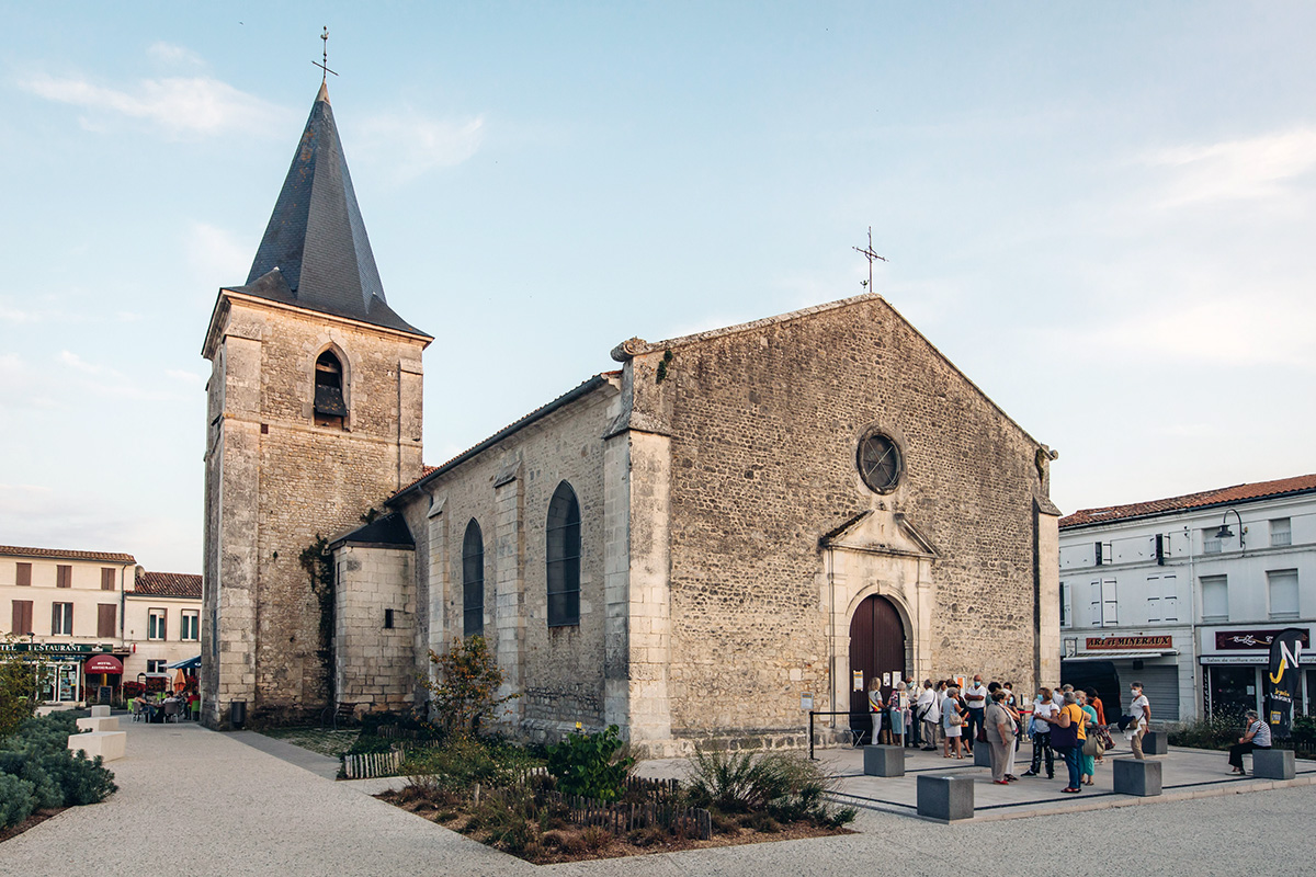 De style baroque, cette église construite de 1679 à 1683 succède à un précédent édifice roman. Demandé en 1666 par les habitants catholiques de la commune, l’édifice a été conçu selon les dessins de Jacques Guérinet, architecte des bâtiments de l’abbaye aux Dames de Saintes. Face aux difficultés de financement pour la reconstruction de l’édifice, les catholiques demandent la participation des protestants prétextant que ceux‑ci auraient exploités les ruines de l’ancienne église et vendu les cloches.