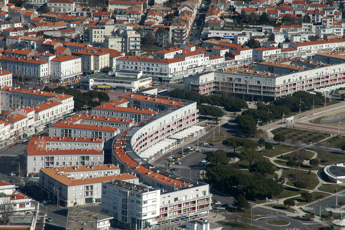 Suivant la courbe formée par la Grande Conche, cet ensemble de bâtiments constitue la base de la composition triangulaire imaginée par Claude Ferret, dont le sommet est le marché central.