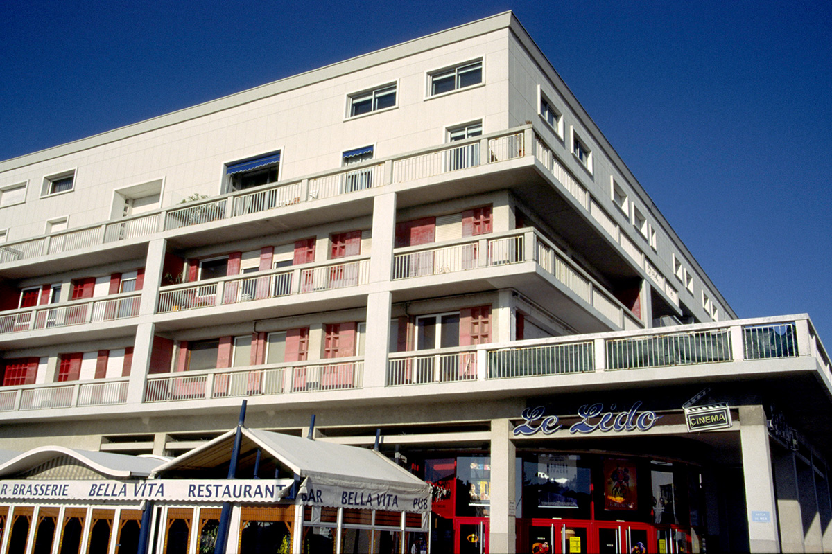 Côté plage, le Front de Mer est constitué de deux barres d’immeubles, à la composition linéaire classique, originellement reliés par un porche jusqu'en 1986 et aujourd’hui détruit.
