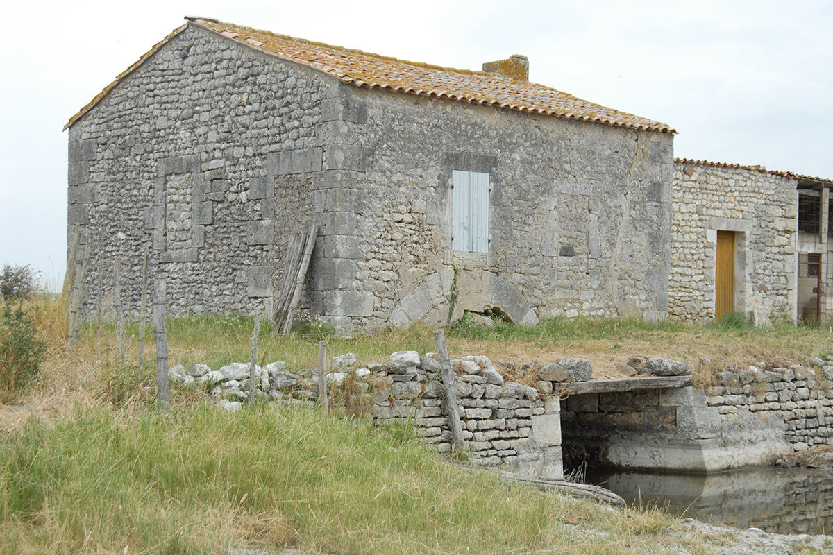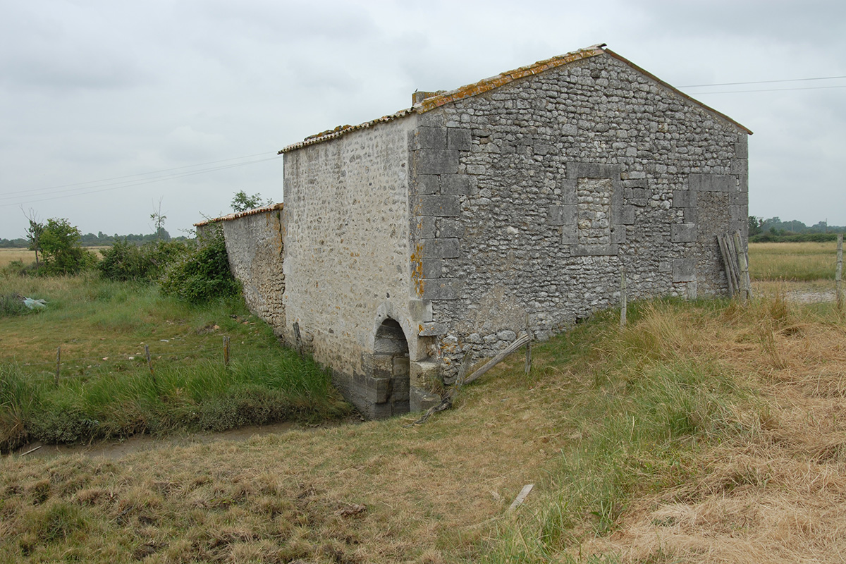 Le moulin à marée est situé sur un ruisson dans les marais de l’Aubat. Il est suivi d’un petit bassin de retenue. La façade côté bassin est percée d’une seule baie, munie de volets en bois. Une porte est située sur le côté. Plusieurs baies ont été bouchées. Le passage d’eau est surmonté d’une petite voûte en bandeau. Le moulin est aujourd’hui utilisé comme habitation (en cours de rénovation).