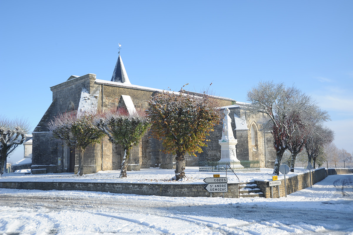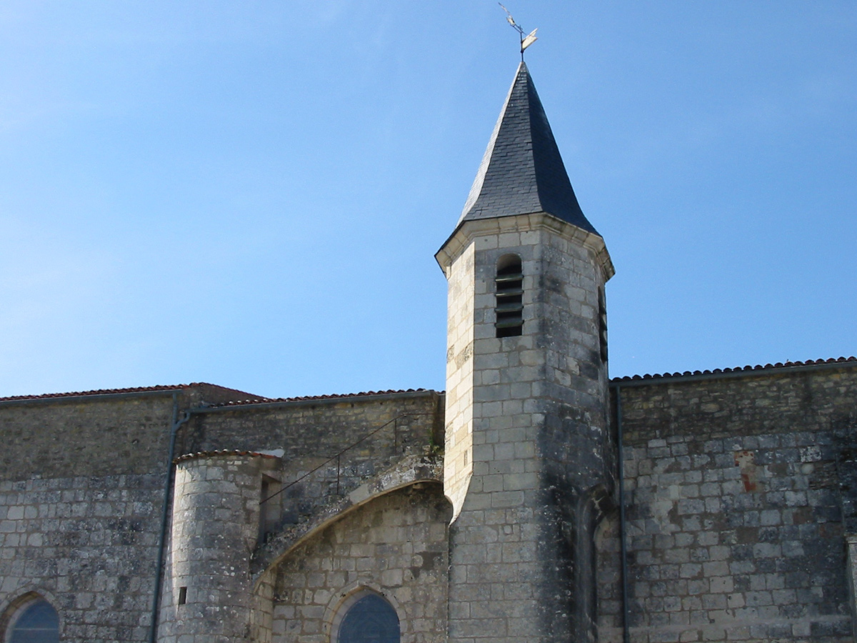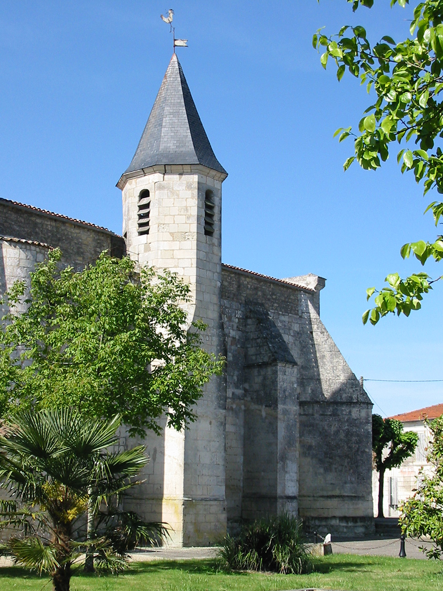La particularité de l’église Saint‑Vincent repose sur son clocher construit au 17e siècle posé sur un contrefort et dont l’accès se fait en partie par un escalier extérieur. L’édifice présente l’écusson sculpté aux armes de la France, surmonté d’une couronne, symbolisant le rattachement de la Saintonge, après une longue possession anglaise.