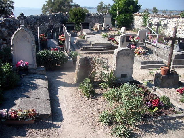 Situé au pied de l’église, le cimetière semble être présent au même endroit depuis le Moyen Âge, hypothèse attestée par la mise au jour de sarcophages et d’ossements près de l’église. Le cimetière comprenait originellement un secteur réservé aux protestants. L’essentiel des tombes existantes de nos jours remontent à la seconde moitié du 19e siècle.