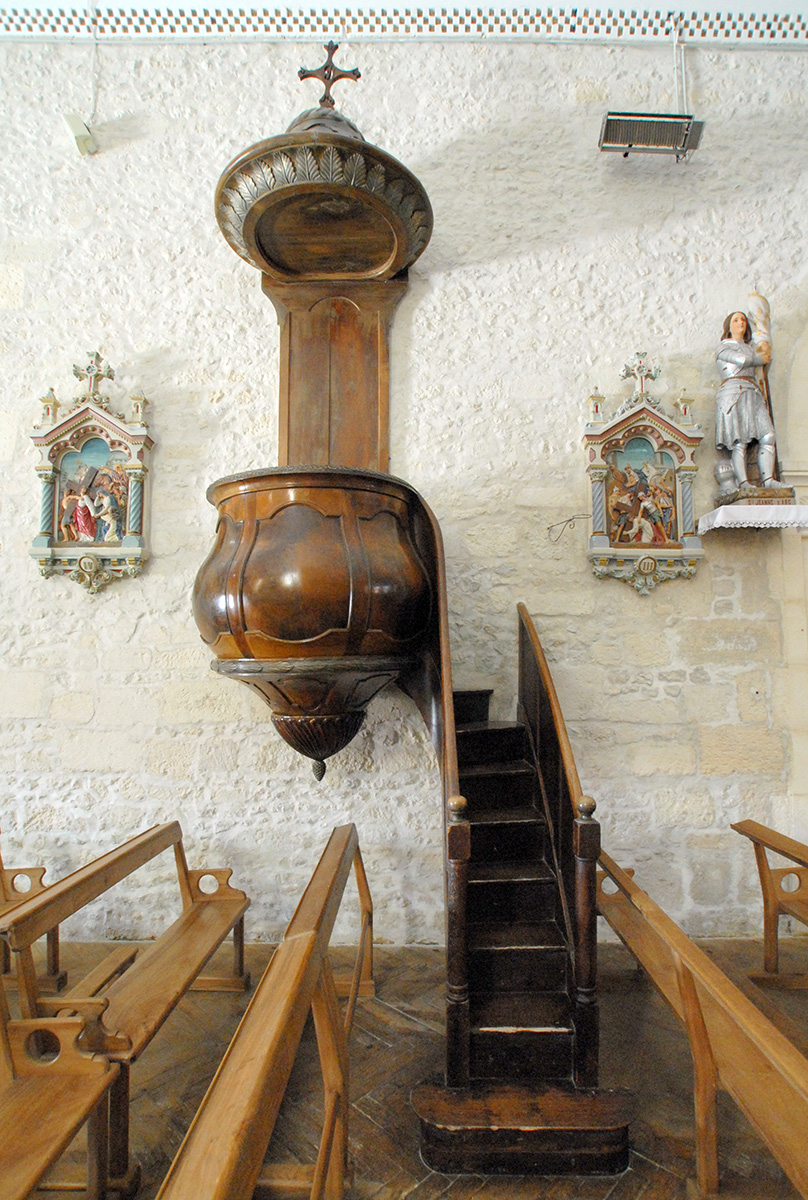 Implantée dans l’église Saint‑Martin à Chenac, cette chaire à prêcher aurait été réalisée au 18e siècle. La chaire a été déplacée suite à la chute de la voûte en plâtre.