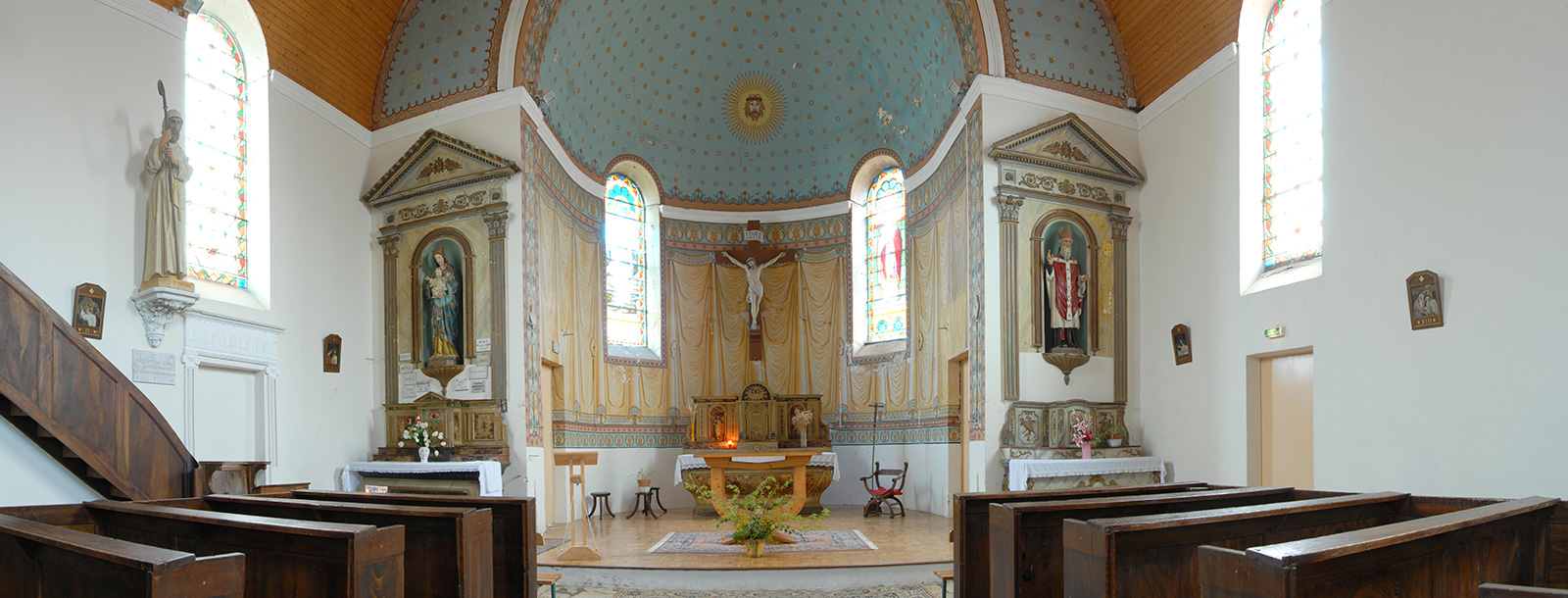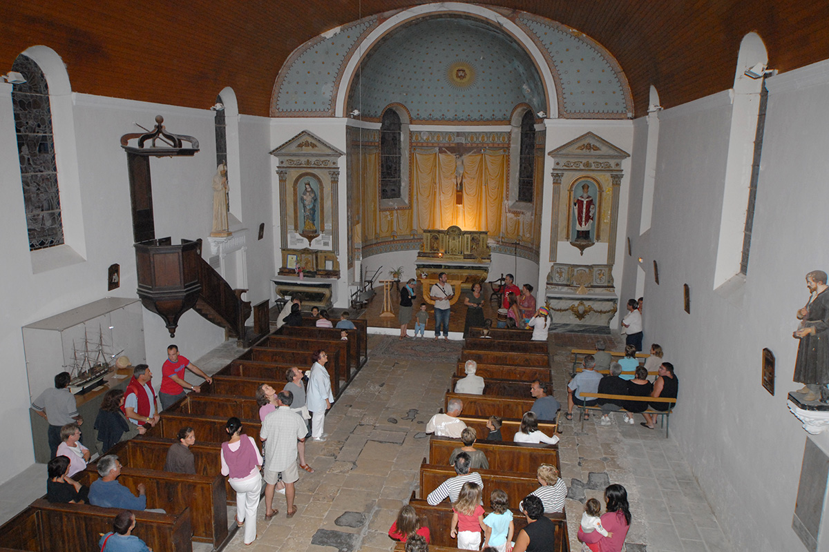 Construite en 1845 par l’architecte Pierre‑Adolphe Viaud, l’église Saint‑Martin, de style néo‑classique, remplace un précédent édifice roman, qui était trop petit et vétuste. De plan simple et à nef unique, le bâtiment est éclairé par un ensemble de vitraux réalisé par un maître verrier auvergnat nommé Baratte. L’église est surmontée d’un clocher et de sa flèche en ardoise : ceux-ci ont été détruits par la tempête en 1999 avant d’être restaurés quelques mois plus tard. L'édifice contient trois autels anciens, une chaire ancienne, des bancs collectifs clos, un bateau votif (inscrit ISMH), une charrue votive, un ciboire (début 19e), le "calice du Chanoine Bony" (début 20e).