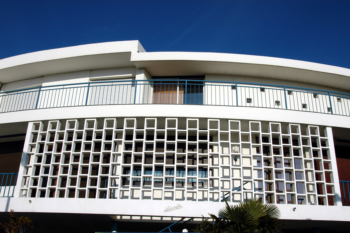 Construite en 1956, la maison Hélianthe a été édifiée pour le docteur Counil, dentiste, en suivant les plans de l’architecte bordelais Yves Salier. Son plan original en arc de cercle est dû à la nécessité de relier une barre d’immeubles au bâtiment des Ponts et Chaussées, imaginé par le même architecte que la maison.