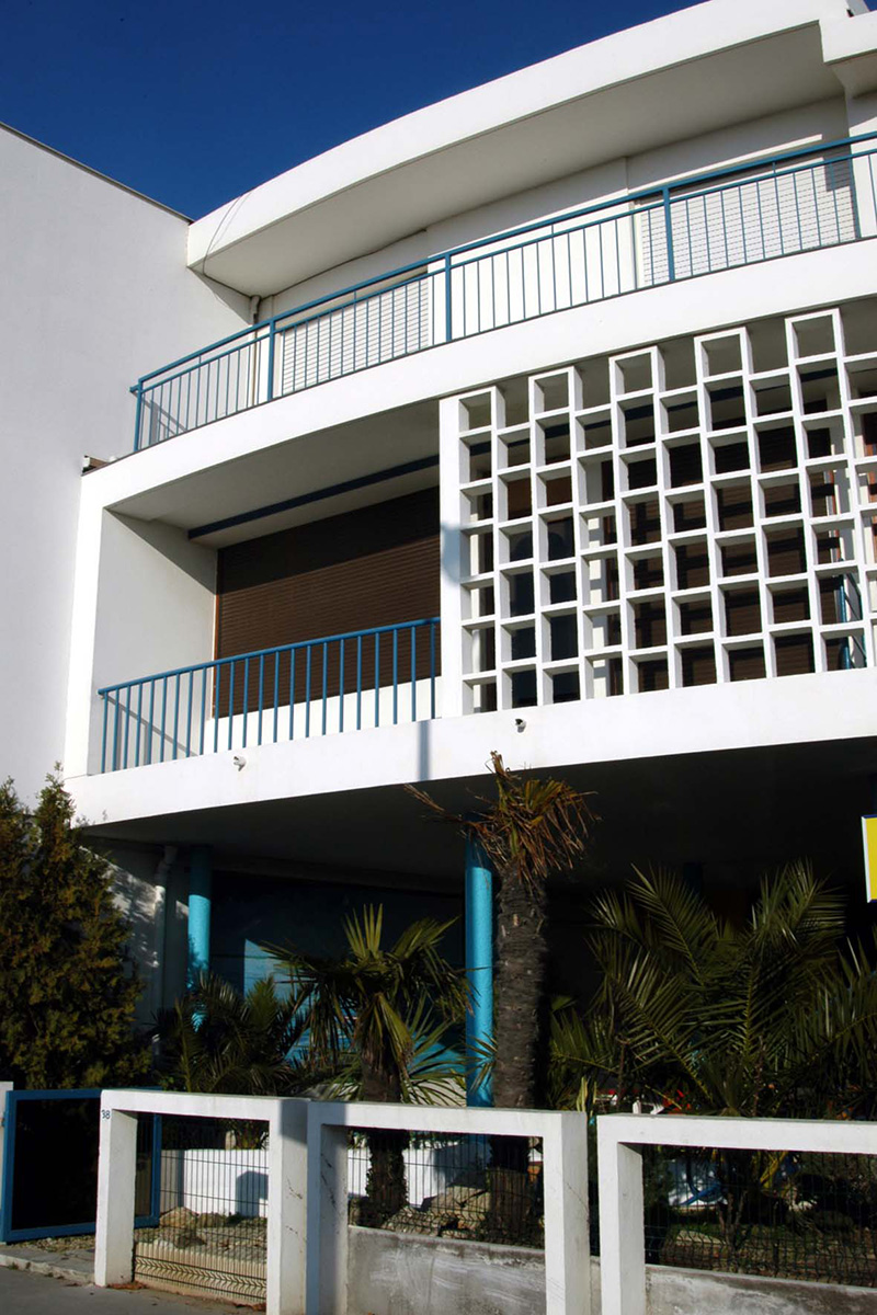 Sa façade principale, largement exposée aux rayons du soleil, joue de claustras et de retraits pour offrir une multitudes d’ambiances aux espaces intérieurs.