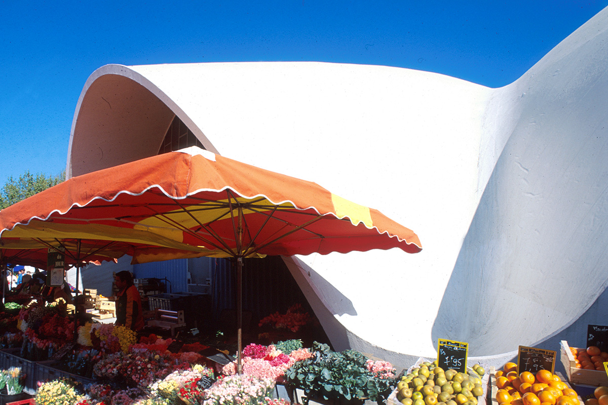 Parmi les premiers monuments à expérimenter la forme libre de béton, le Marché de Royan a inspiré d’autres constructions européennes notamment le Centre des Nouvelles Industries et Technologies à la Défense (Paris, 1958).