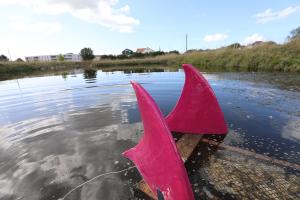 Sous son apparence ludique et poétique, l’œuvre dénonce l’illusion du contrôle que l’homme pense avoir sur son environnement naturel et son aveuglement face aux urgences écologiques. C’est un manifeste critique mêlant art, politique et écologie. Créée dans un contexte personnel d’exil temporaire aux États-Unis, l’œuvre reflète un tournant plus engagé de l’artiste, influencé par un environnement social marqué par le déni, l’extré-misme et les fractures idéologiques. Elle reprend les codes des parcs aquatiques, de la consommation de la nature comme spectacle, rappelle la prédation excessive de certaines espèces menacées, célébrant au passage le cinquantenaire du film culte Les Dents de la Mer. En plongeant le visiteur dans un paysage maritime faussement paisible, Marineland use de l’ironie et de la confrontation pour interpeller le spectateur et lui rappeler que nous ne sommes, nous aussi, qu’une espèce vulnérable en voie de disparition. *Ne nourrissez pas les animaux avec des personnes, sauf si ce sont des idiots, des racistes, des fascistes, ou s’ils ne croient pas au changement climatique ou à l’extinction des espèces.