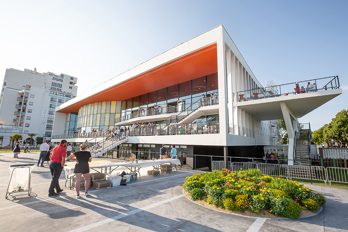Formant un parallélépipède élevé sur pilotis couvert d’un toit‑terrasse, il est, à sa construction, largement ouvert sur la mer. À l’origine, le palais se composait d’une salle de spectacle modulable, dix salles de commissions, un hall de réception, un restaurant, un bar, et un parvis pour les fêtes de plein‑air.