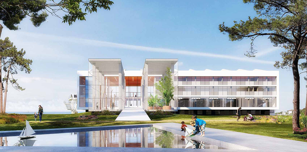 Implanté sur l’emplacement du casino de Foncillon détruit par les bombardements de 1945, le Palais des Congrès compte parmi les premiers édifices du genre en France, construit entre 1954 et 1957.