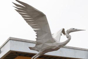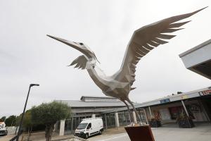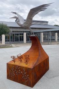 Dans un éclat d’acier poli et de lignes fuselées, Le héron s’élève entre ciel et mer, comme enlevé au rivage par un souffle poétique. Cette sculpture métallique, réalisée dans un style emprunté à la carrosserie automobile, conjugue puissance mécanique et grâce naturelle dans un hommage vibrant à la liberté. L’artiste a conçu ce héron comme une chimère d’eau et de vent, une silhouette tendue vers l’infini. Chaque plaque de métal, martelée et courbée avec une précision artisanale, reflète la lumière comme les flots sous la lune. Les soudures, volontairement apparentes, évoquent les cicatrices du voyage et le labeur de l’homme face à la matière. Dans cette œuvre, l’oiseau devient messager. Il quitte les berges familières pour rejoindre les cieux incertains, ailes déployées dans un geste suspendu. Il est, cet instant précis, où le poids du monde cède à l’élan de l’imaginaire. L’artiste réussit à suspendre le désir de l’ailleurs et l’appel du large dans le mouvement de ce héron.