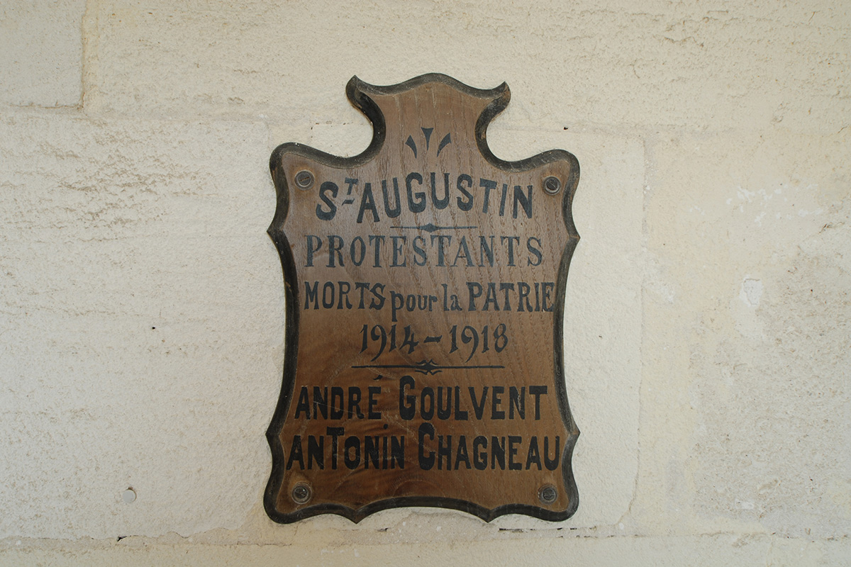 Comme dans les autres communes de la presqu’île d’Arvert, la Réforme protestante s’implante très tôt à Saint‑Augustin. Mais jusqu’au 19e siècle, la commune est dépourvue de temple et les protestants doivent parcourir plusieurs kilomètres pour se rendre à celui de Vaux‑sur‑mer.