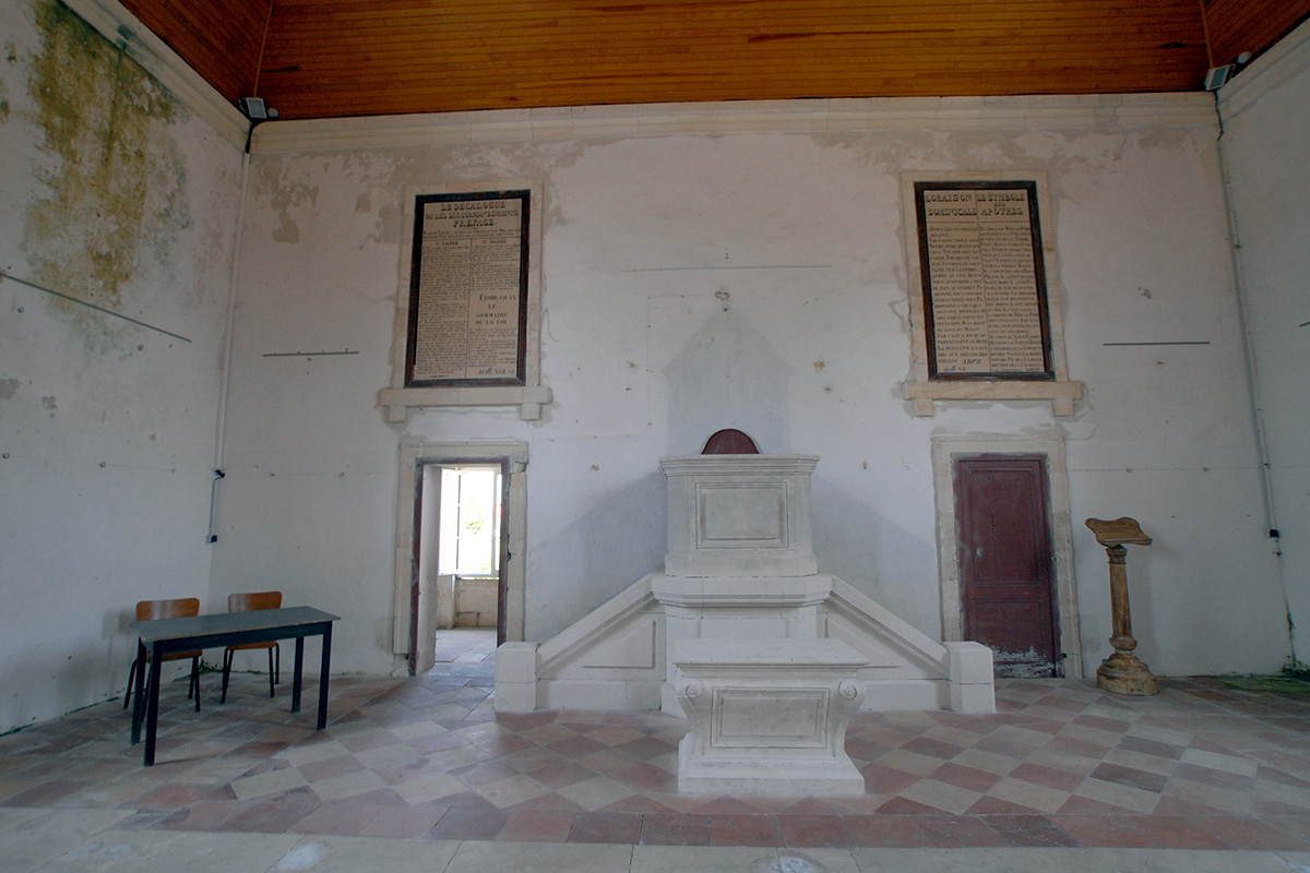 En 1857, une souscription est lancée et ce sont 250 francs qui sont récoltés pour la construction du temple. Le terrain est cédé par la municipalité et l’architecte Sauvion, qui a œuvré pour l’église de la ville, se voit confier les travaux.